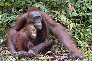 However, when orangutans are forced to live closely together they don’t interact as much because they are stressed.  Consequently, learning is not shared so widely.  This means they are less able to adapt to change and cope in times of difficulty.  For example finding ‘fallback’ food; this is food that isn’t so good but is okay when the usual food plants cannot be found.  This is happening now as a result of deforestation (cutting down natural forests to plant crops for humans).  According to the IUCN, all of the great apes (except humans) are either Endangered or Critically Endangered.